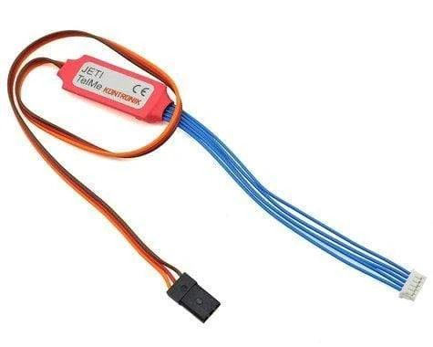 Kontronik TelMe Modules are designed to provide critical data points to compatible radio systems when utilizing appropriate Kontronik ESCs such as the Kosmik and JivePro series of ESCs. Simply plug in the TelMe to both the Kontronik ESC, and correct port on the receiver side, and Telemetry often times is immediately available! Some radio systems will require a firmware update, the purchase of an app, or loading features to the radio before Telemetry is running.